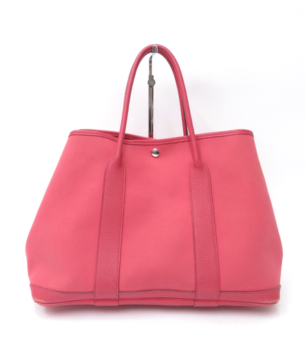 Authentic Hermes Garden Party MM Canvas Leather Tote Bag #43730
