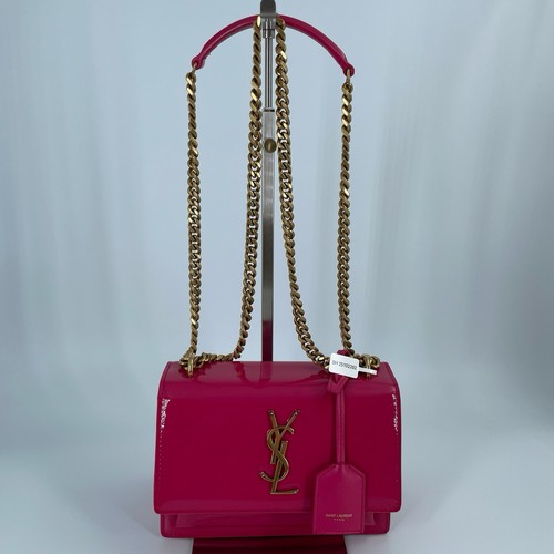 Authentic Saint Laurent Sunset Crossbody Bag Pink Patent Leather 102202