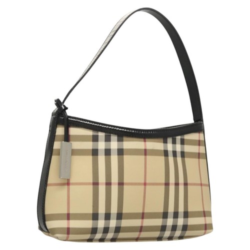 BURBERRY Nova Check Shoulder Bag PVC Beige Silver Auth 123380