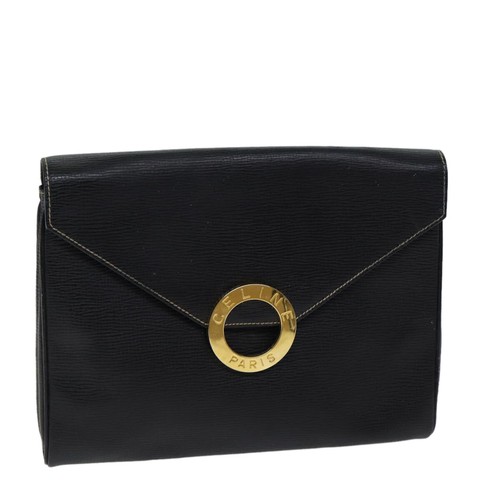 CELINE Circle Shoulder Bag Leather Black Auth 72649