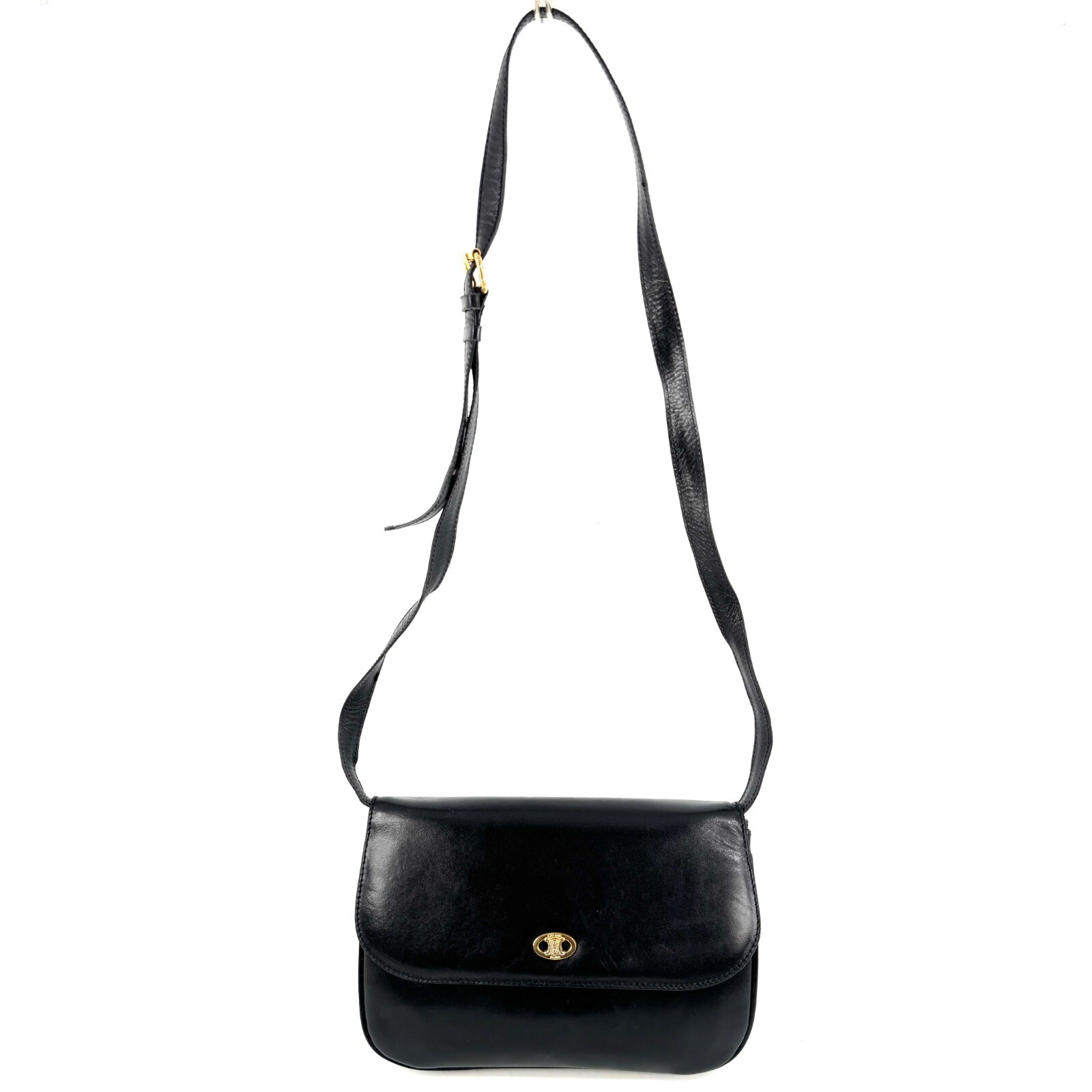 Celine Leather Crossbody Shoulder Bag Black Gold Magnetic Dustbag Authentic