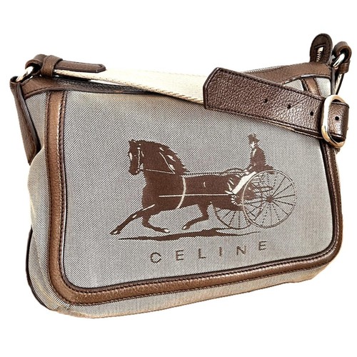 CELINE Shoulder Bag Canvas Beige Authentic 0103