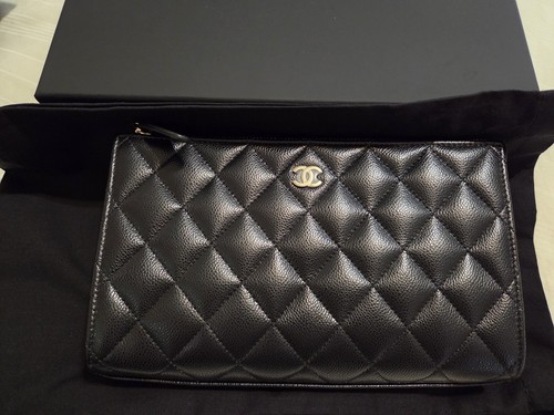 Chanel NIB Black Classic Zipped Pouch in Cavier