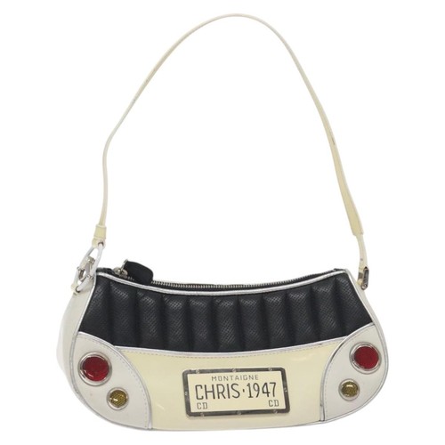 Christian Dior Montaigne Shoulder Bag Leather Ivory Silver Auth 130892