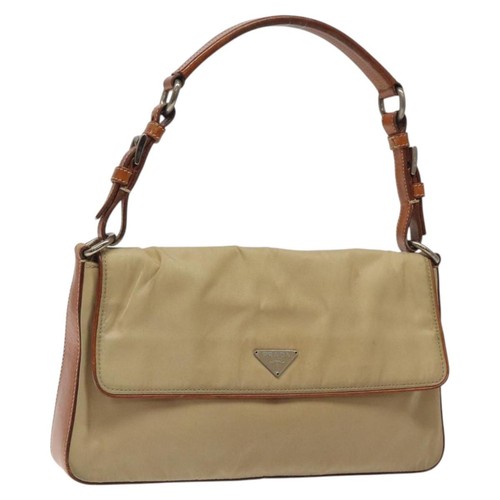 PRADA Shoulder Bag Nylon Beige Silver Auth 127381