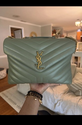 Saint Laurent YSL Monogram Loulou Quilted Shoulder Bag Olive Green