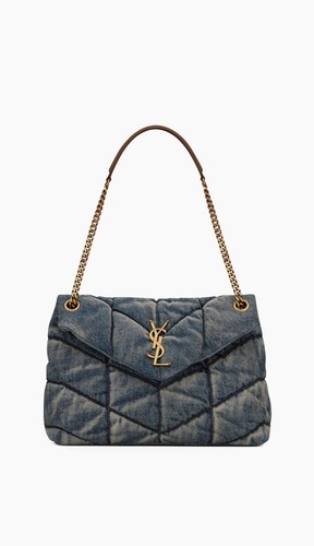 YSL Puffer Shoulder Bag in Quilted Denim and Suede