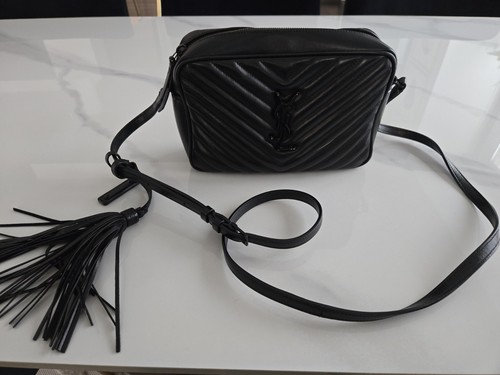 YSL Saint Laurent Lou Quilted Black Calfskin Leather Camera Bag