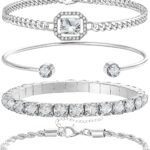 17IF Dainty Gold Silver Bracelets Set for Women Girls 14K Plated Link Cubic Zirconia Paperclip Stake Layering Chain Adjustable Trendy Hand Jewelry 4 Pcs