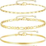 Gold Ankle Bracelets for Women, 14k Gold Plated Waterproof Cuban Link Chain Anklets Set, Layered Anklet Bracelets for Women Beach Gift Adjustable Size 5pc