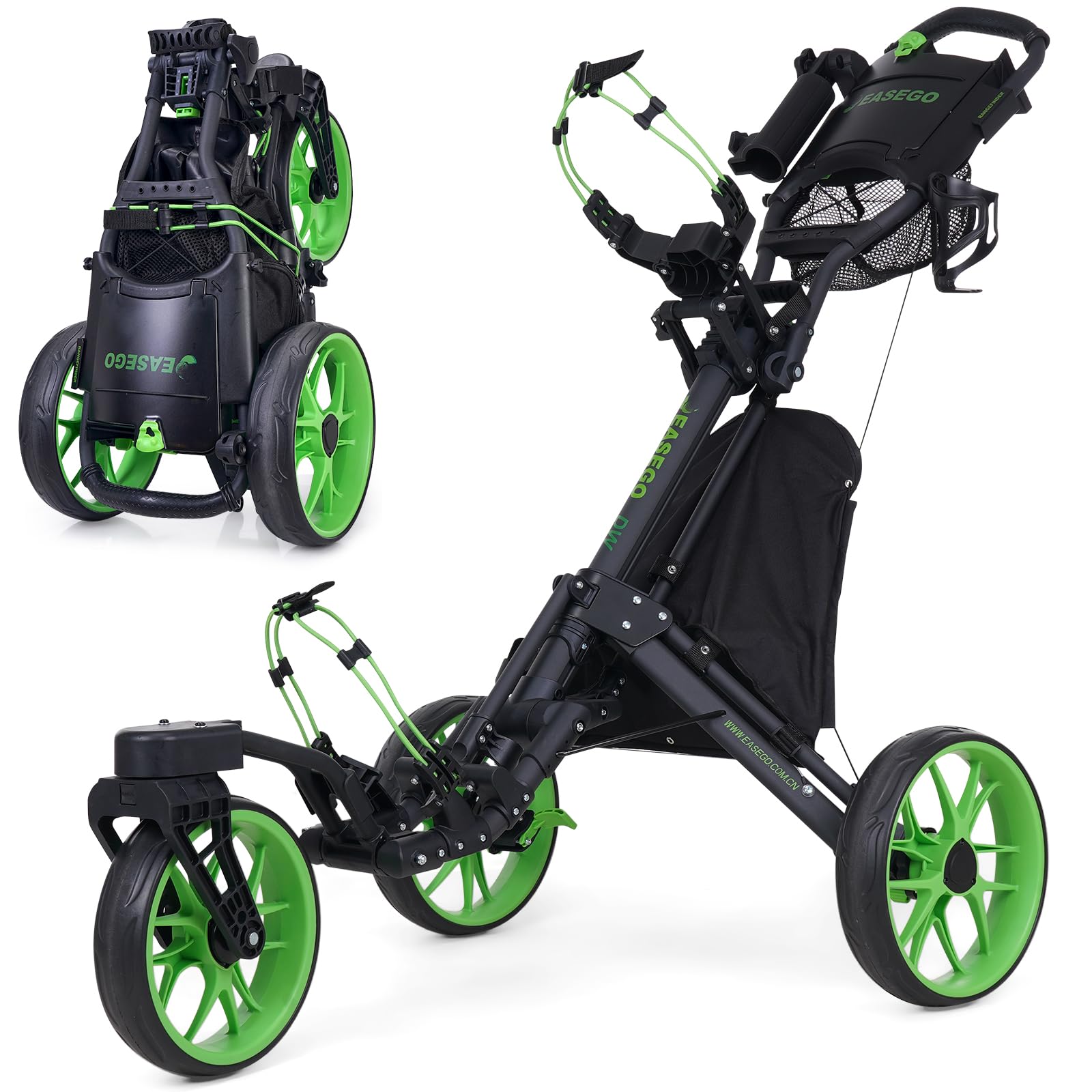 EASEGO Golf Push Cart 3 Wheel : 360° Swivel Front Wheels with Phone Holder/Cup Holder/Umbrella Holder/Foot Brake Quick Fold Golf Walking Push Pull Carts All-Terrain Golf Caddy Carts | 5 ⭐ | Check |