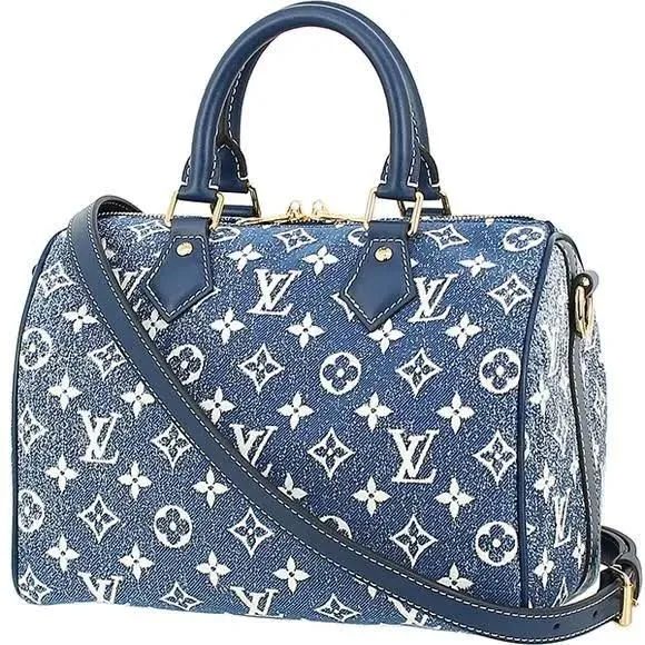 The Louis Vuitton Speedy Bandouliere Monogram Jacquard Marine1 is a stunning representation of luxurious craftsmanship and modern practicality.