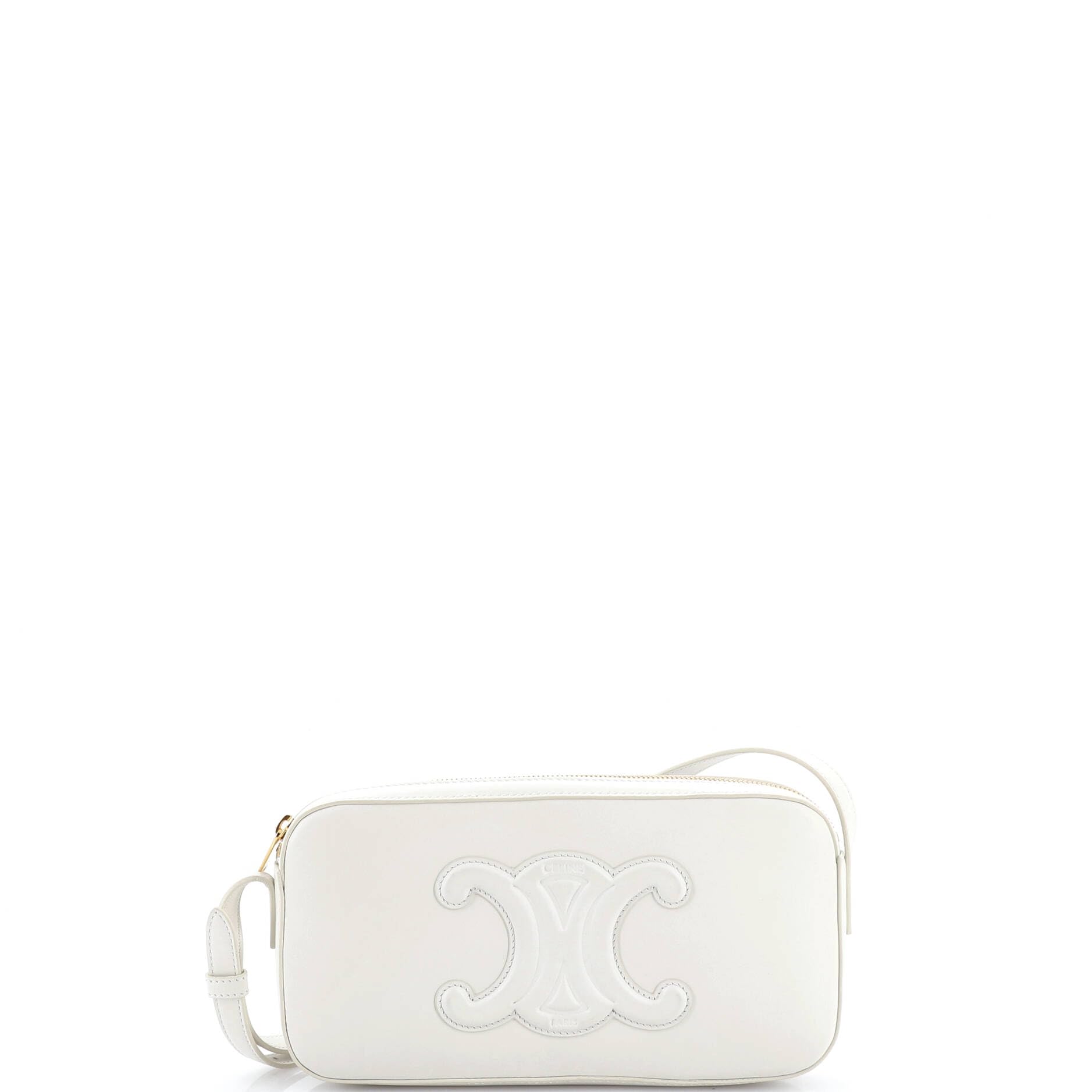 Celine Pre-Loved Cuir Triomphe Camera Shoulder Bag Leather Small, White