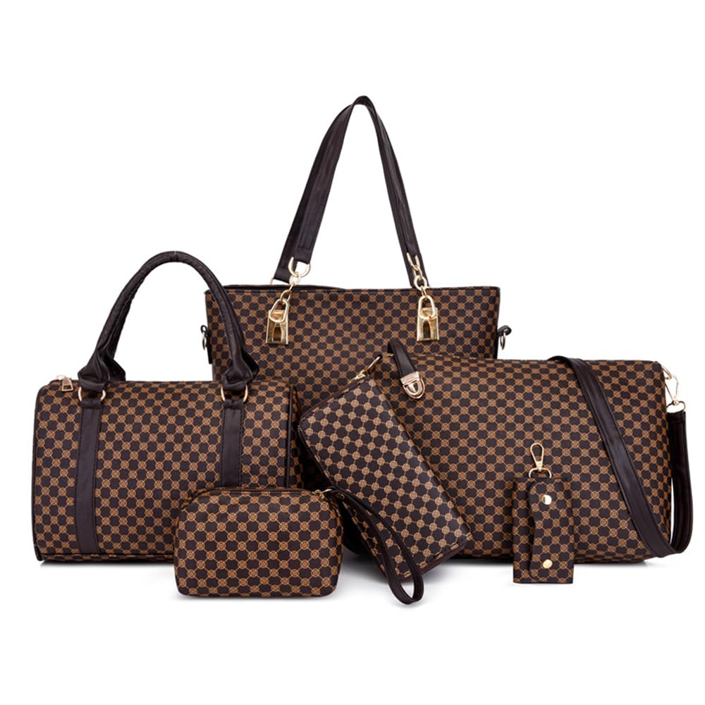 ANNI RIEL Plaid Leather Satchel Handbags for Women Top Handle Tote Purse Ladies Fashion Shoulder Crossbody Bag 6PCS Set