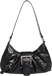 QWINEE Women's Vintage Buckle Shoulder Bag Y2K Punk PU Leather Handbag Clutch Purse
