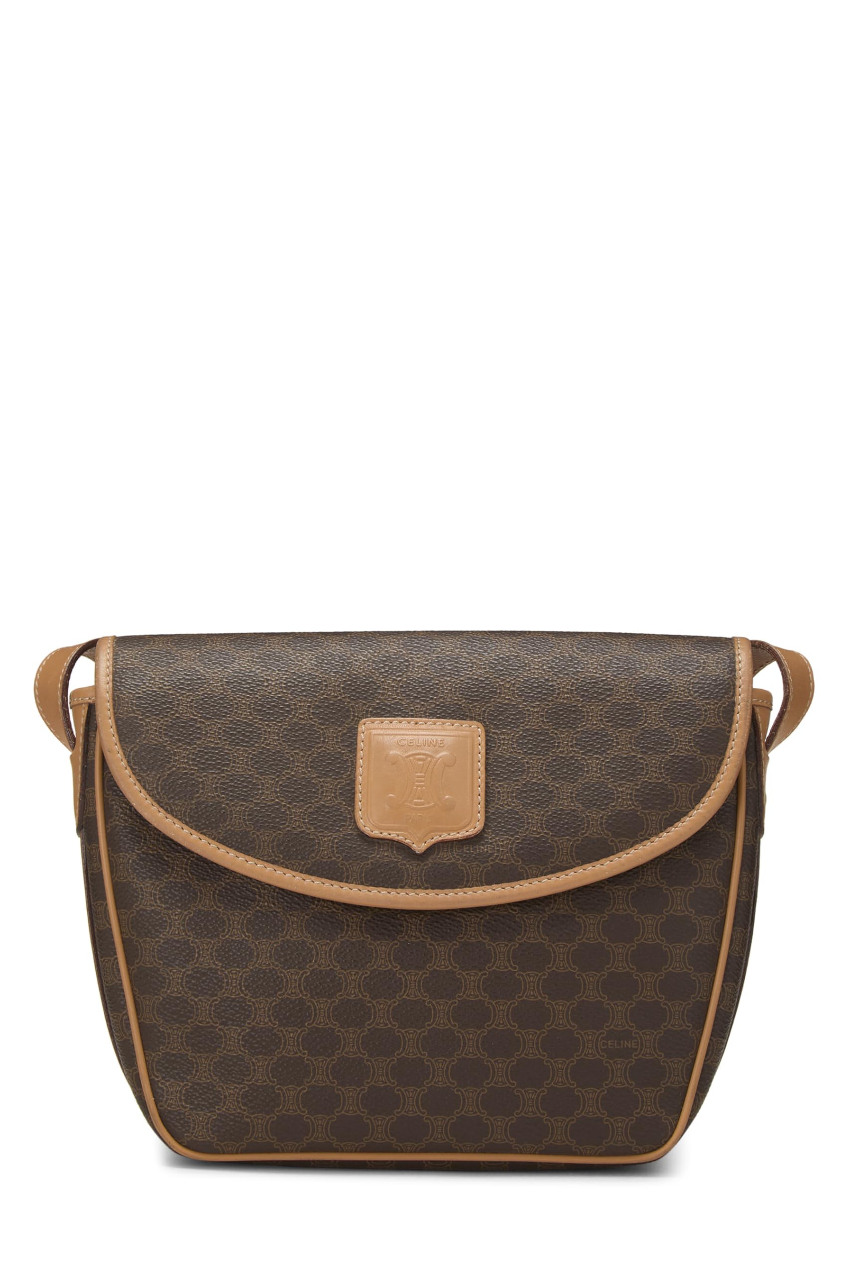 Celine Céline, Pre-loved Brown Coated Canvas Macadam Messenger Bag, Brown