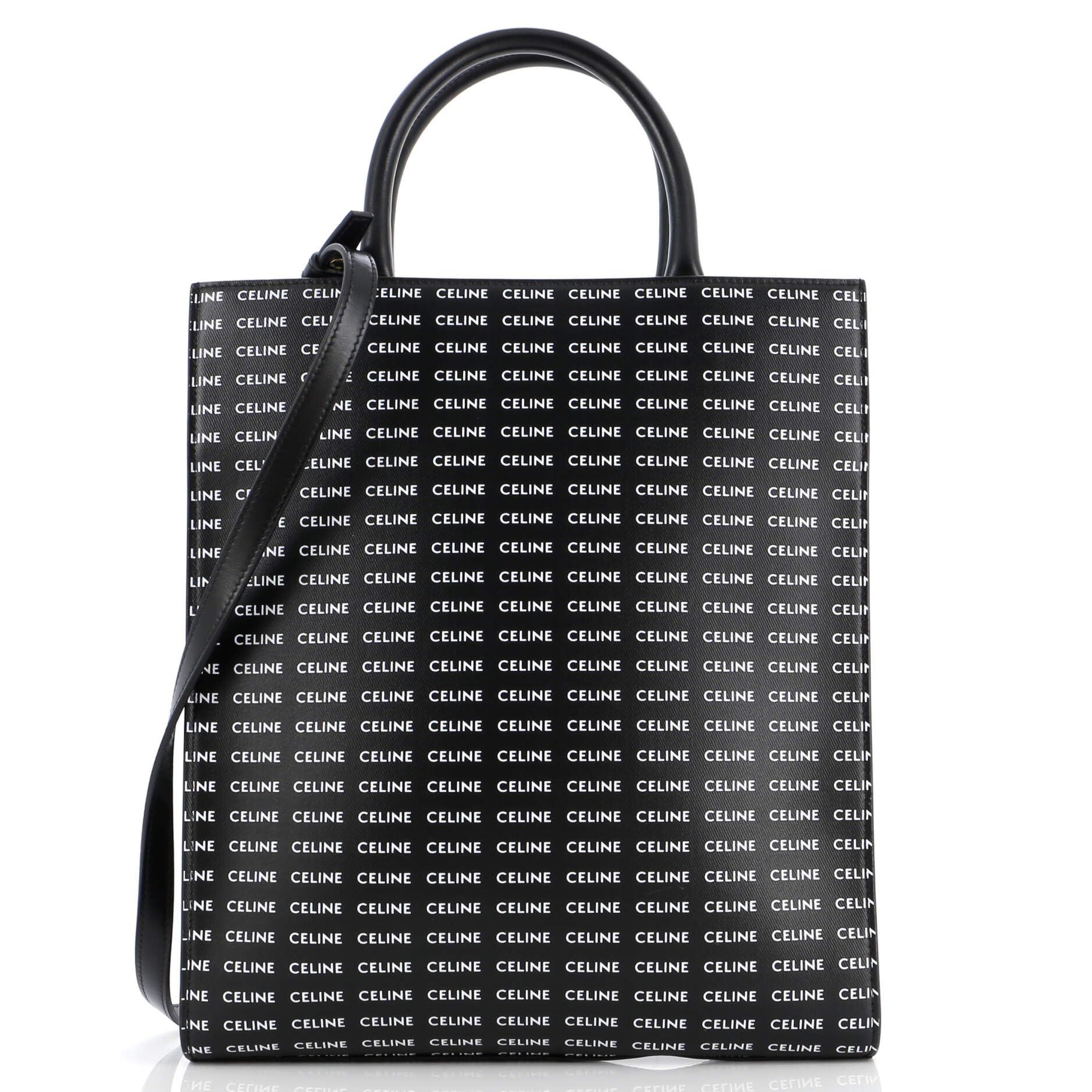 Celine Pre-Loved Vertical Cabas Tote All Over Logo Print Leather Small, Black | 4.5 ⭐ | Check |