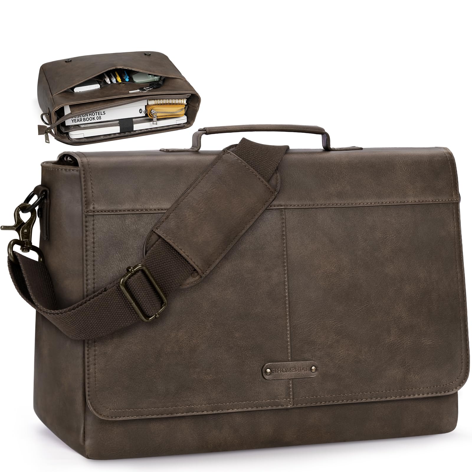 RAINSMORE Vintage Flap Messenger Bag for Men PU Leather Laptop Bag 15.6 Inch Mens Briefcase Waterproof Satchel Computer Bag | 4.7 ⭐ | Check |