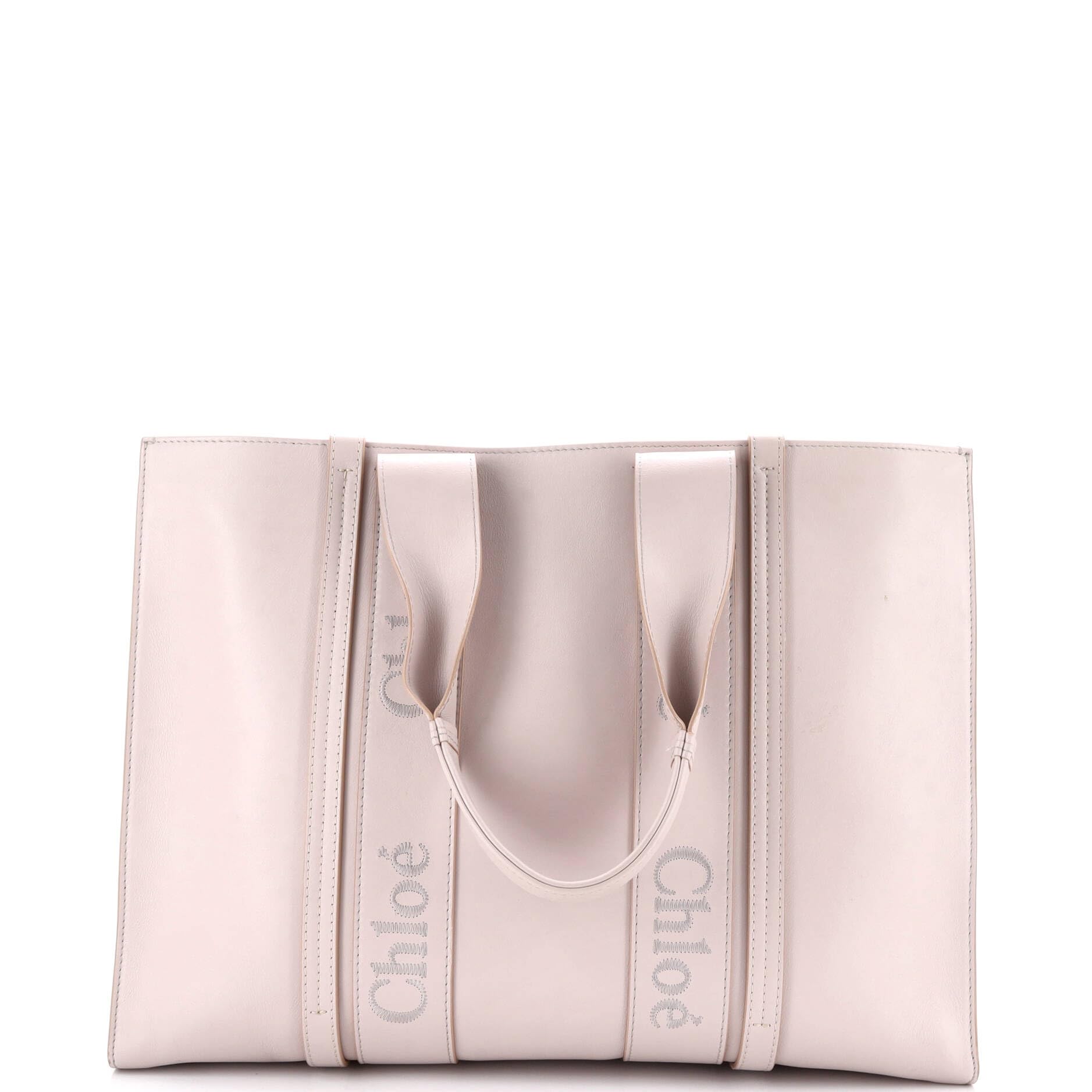 Chloe Pre-Loved Woody Tote Leather Large, Neutral 4.5 ⭐ Check