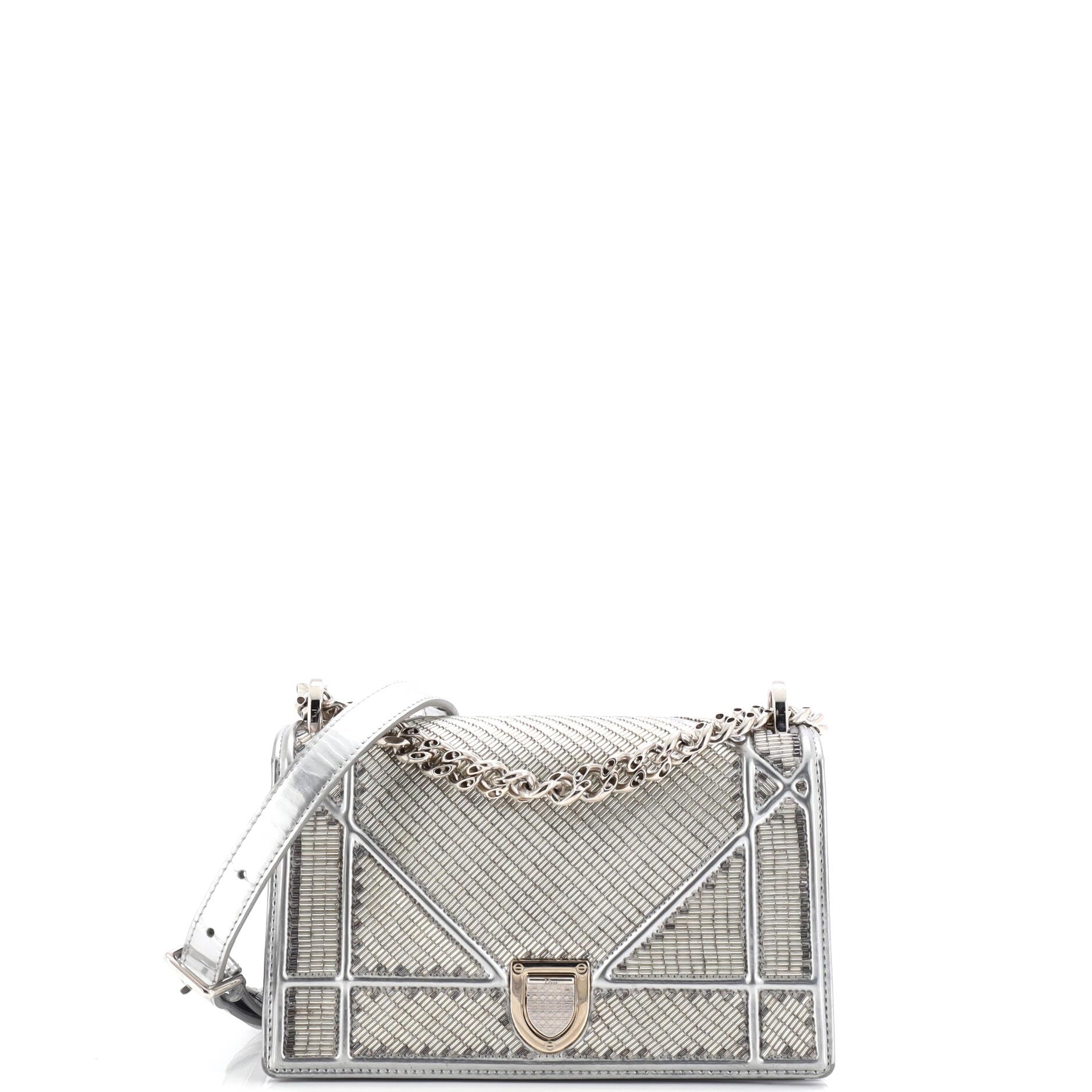 Dior Christian Dior, Pre-Loved Diorama Flap Bag Beaded Leather Small, Silver | 4.5 ⭐ | Check |
