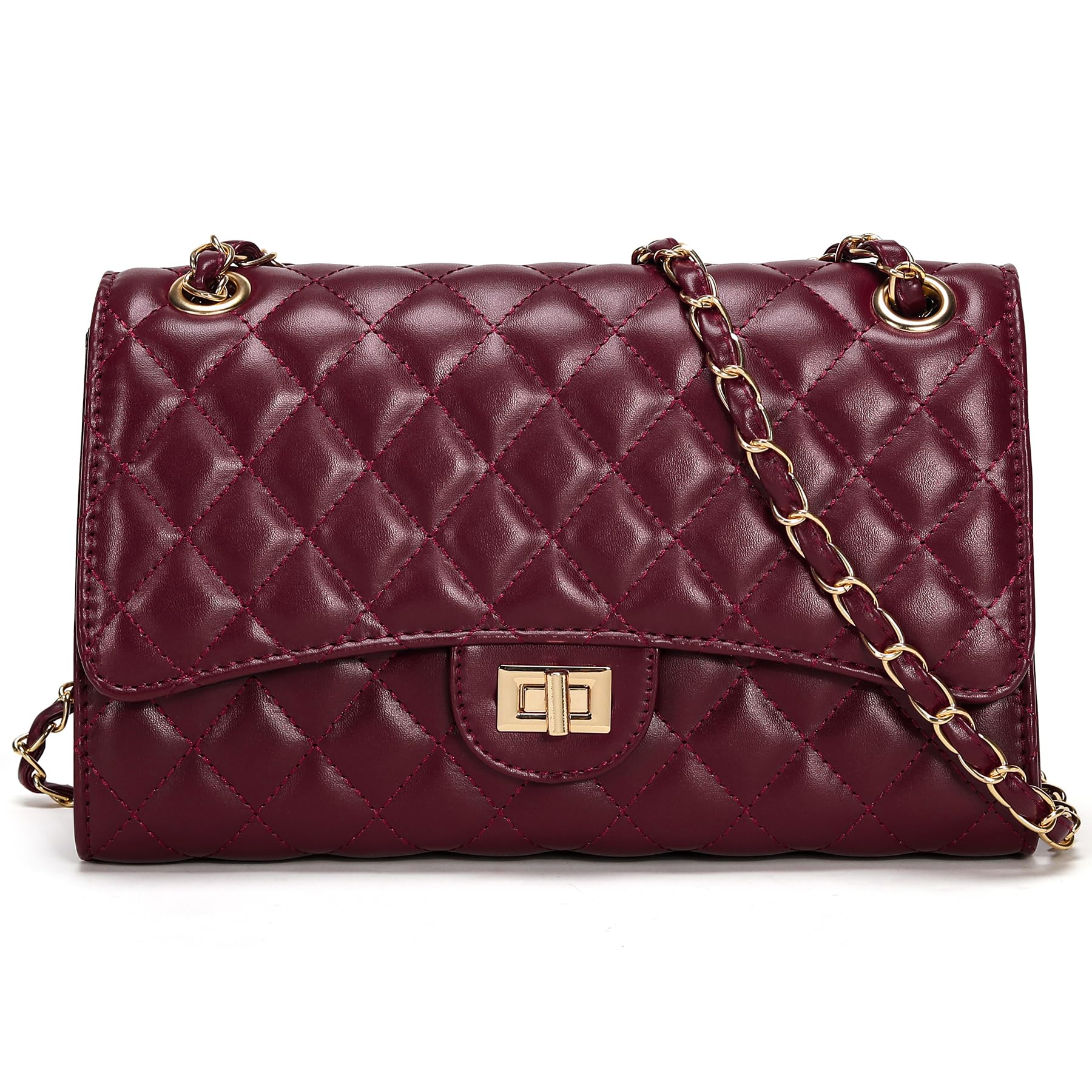 MEIRED Quilted Crossbody Bag for Women Trendy Ladies Shoulder Bag PU Leather Cross Body Purses Satchel HandBag with Chain Strap