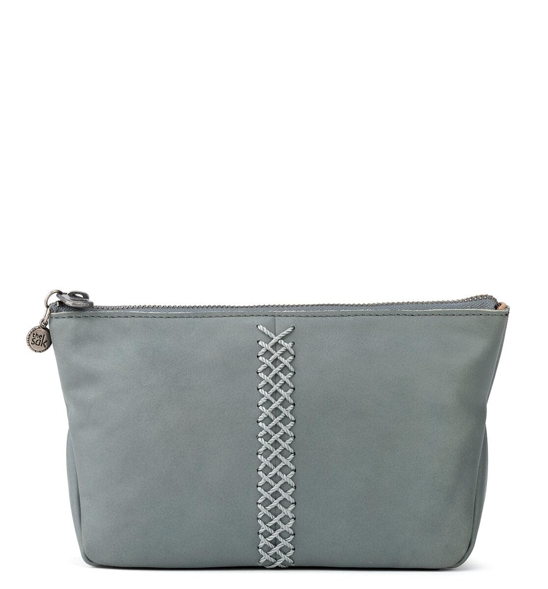 The Sak Essential Medium Pouch in Leather, Travel Bag with Zipper Closure, Denim Crochet
