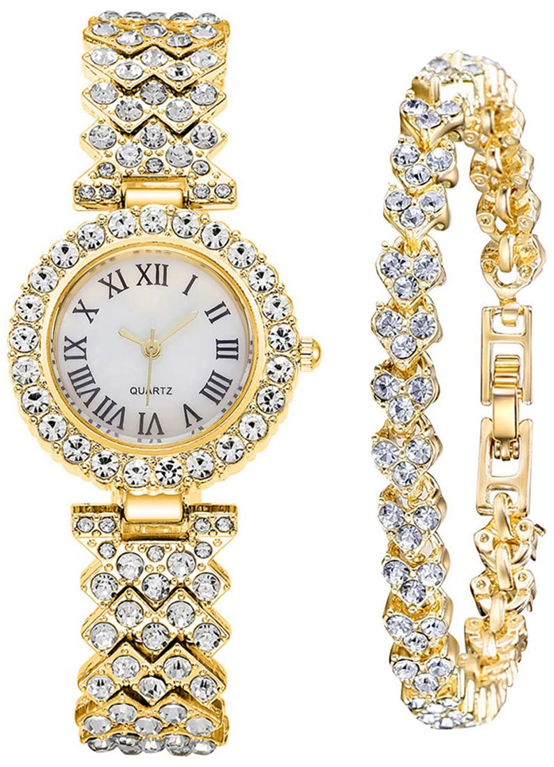 JewelryWe Women Watches Gold Tone Alloy Rhinestone Quartz Watch Stylish Bling Dress Watch Wristwatches for Valentine’s Day | 4 ⭐ | Check |