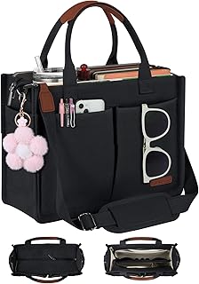 FIORETTO Canvas Tote Bag for Women with Zipper Closure & Individual Compartments for Work College for Teacher & Nurse