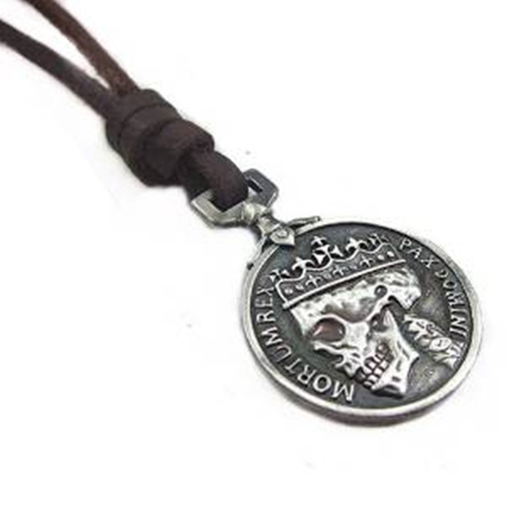 COOLLA Brown Real Leather and Alloy Pendant Adiustable Necklace Mens Necklace Unisex Necklace Cool Necklac Pl231
