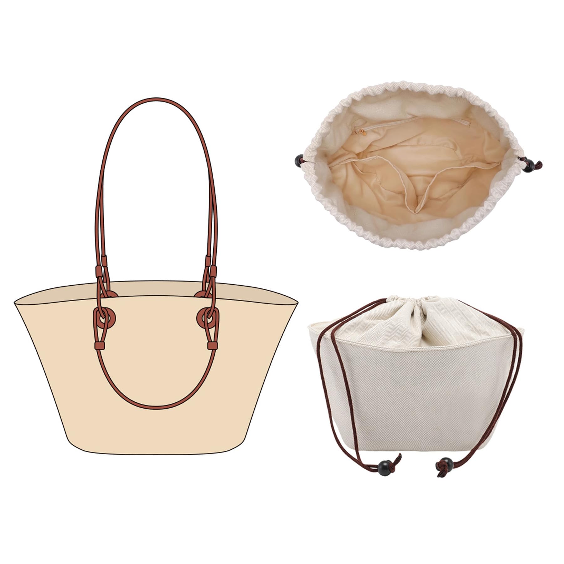 OAikor OAikor Canvas Purse Organizer Insert for Loewe Anagram Basket Bag, Drawstring Tote Bag Organizer Insert with Zipper Pocket, Beige/Large