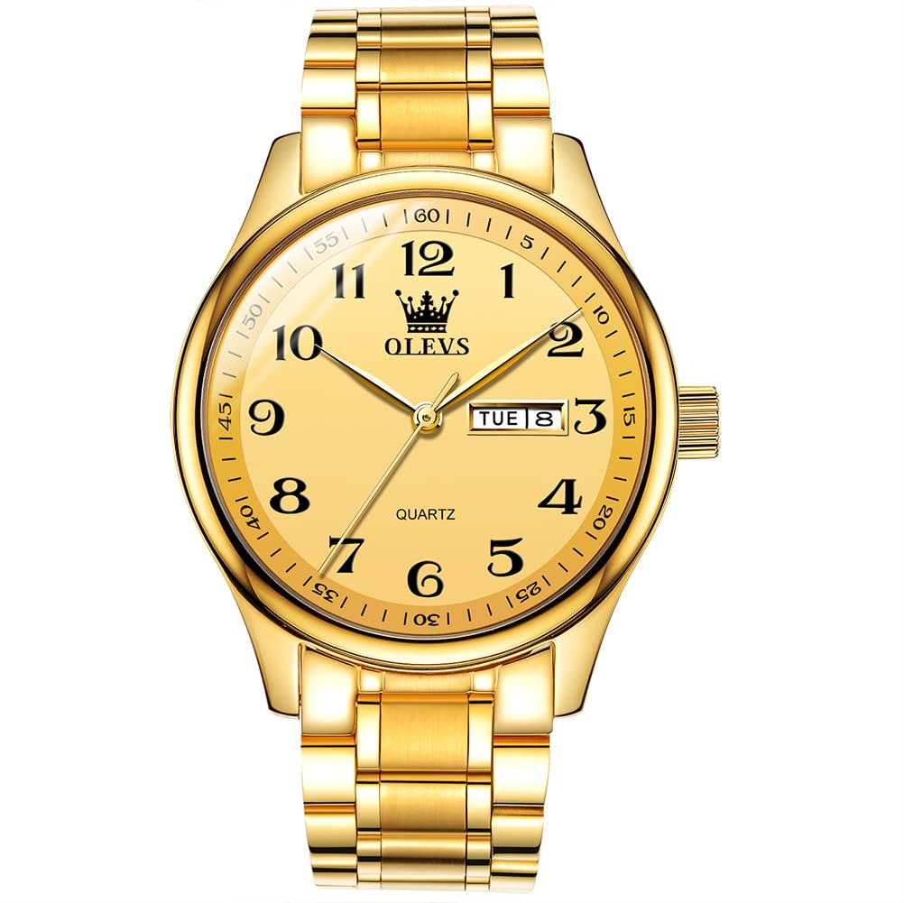 OLEVS Men’s Casual Stainless Steel Watch, Big Face Easy to Read Analog Quartz Watch with Day and Date, Classic Waterproof Diamond Roman Arabic Numerals Dial Dress Watch for Men, Gold Silver Black Band | 4.2 ⭐ | Check |