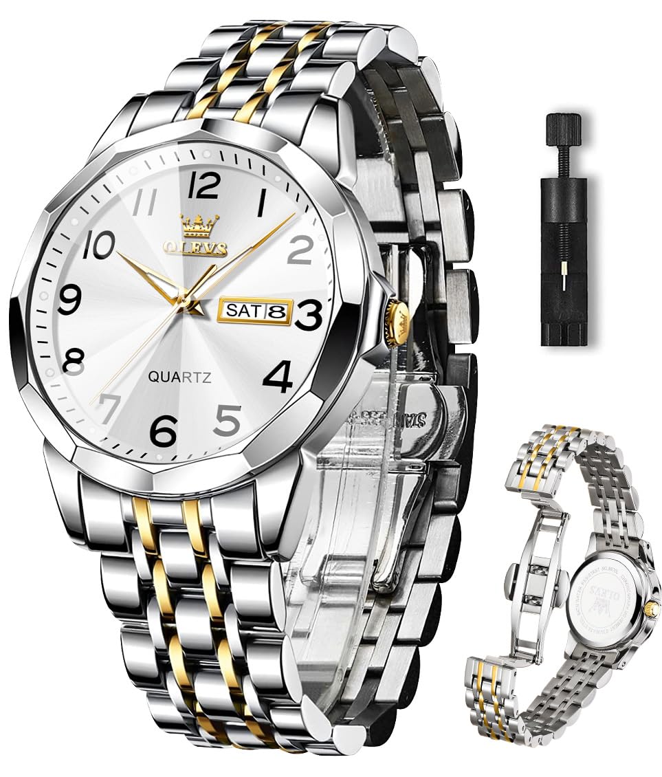 OLEVS Mens Watch, Dress Stainless Steel Analog Quartz Watches for Men with Day Date, Silver Gold Silver Two Tone Big Face Large Waterproof Luxury Casual Easy to Read Number Dial Men’s Wrist Watch | 4.4 ⭐ | Check |