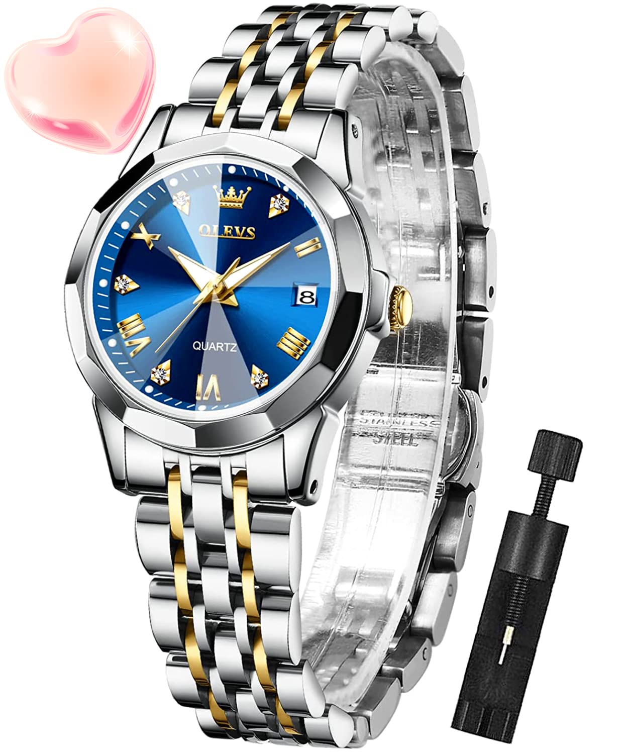 OLEVS Womens Watch Fashion Dress Diamond Female Watches for Ladies Analog Quartz Stainless Steel Waterproof Luminous Day Date Two Tone Wristwatch | 4.4 ⭐ | Check |