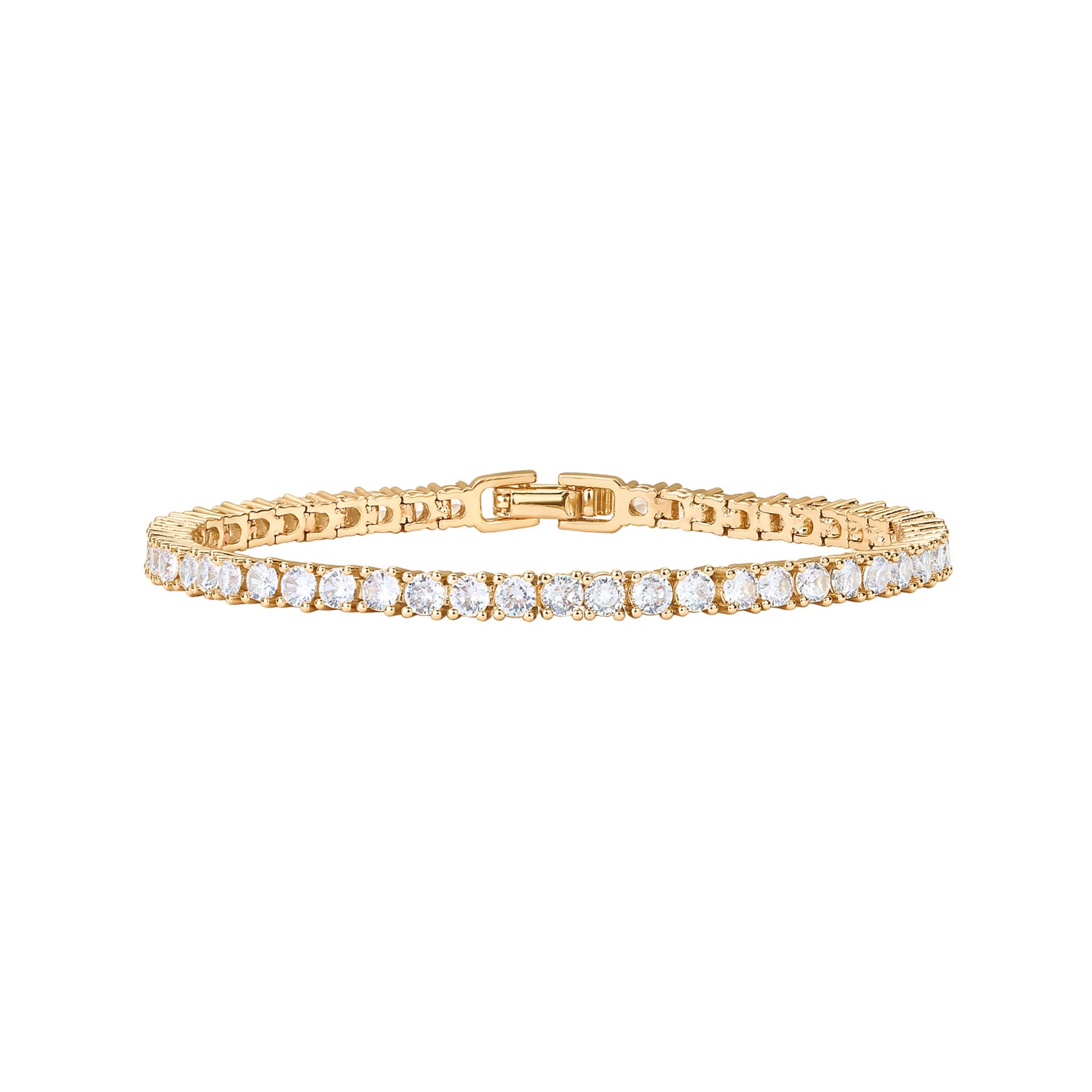 A 3mm Cubic Zirconia Silver Tennis Bracelet For Women, 14K Gold Plated, Sturdy Durable, Fashion Jewelry Accessory, Daily Wear, Gift For Friends, Size Of 6.5-7.5 Inches