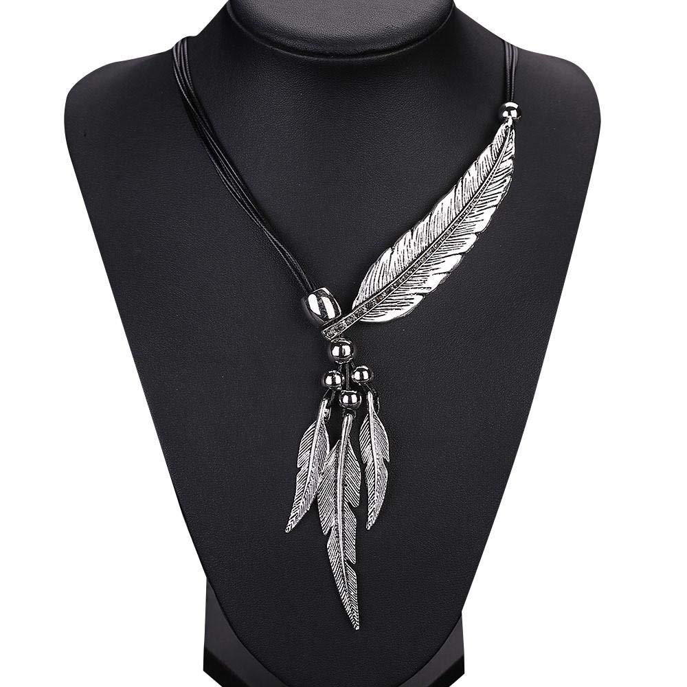 CSIYANJRY99 Long Feather Necklaces for Women Boho Gold Silver Leaf Pendant Sweater Chain Necklace | 4.2 ⭐ | Check |