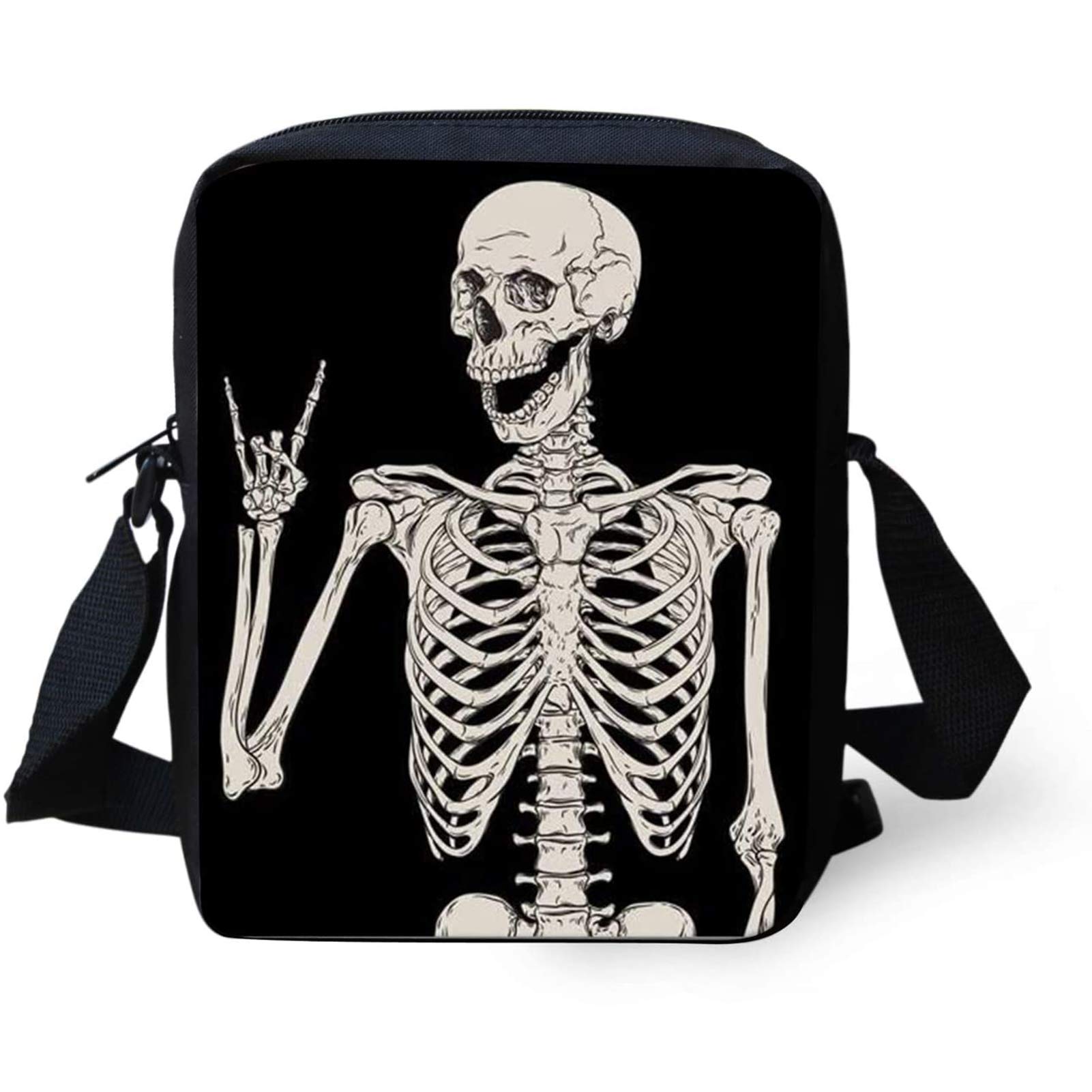 COEQINE Halloween Purse Rock and Roll Human Skull Printed Crossbody Backpack Travel Multipurpose Daypacks Sling for Women Shoulder Bag Goth Purse,Skull