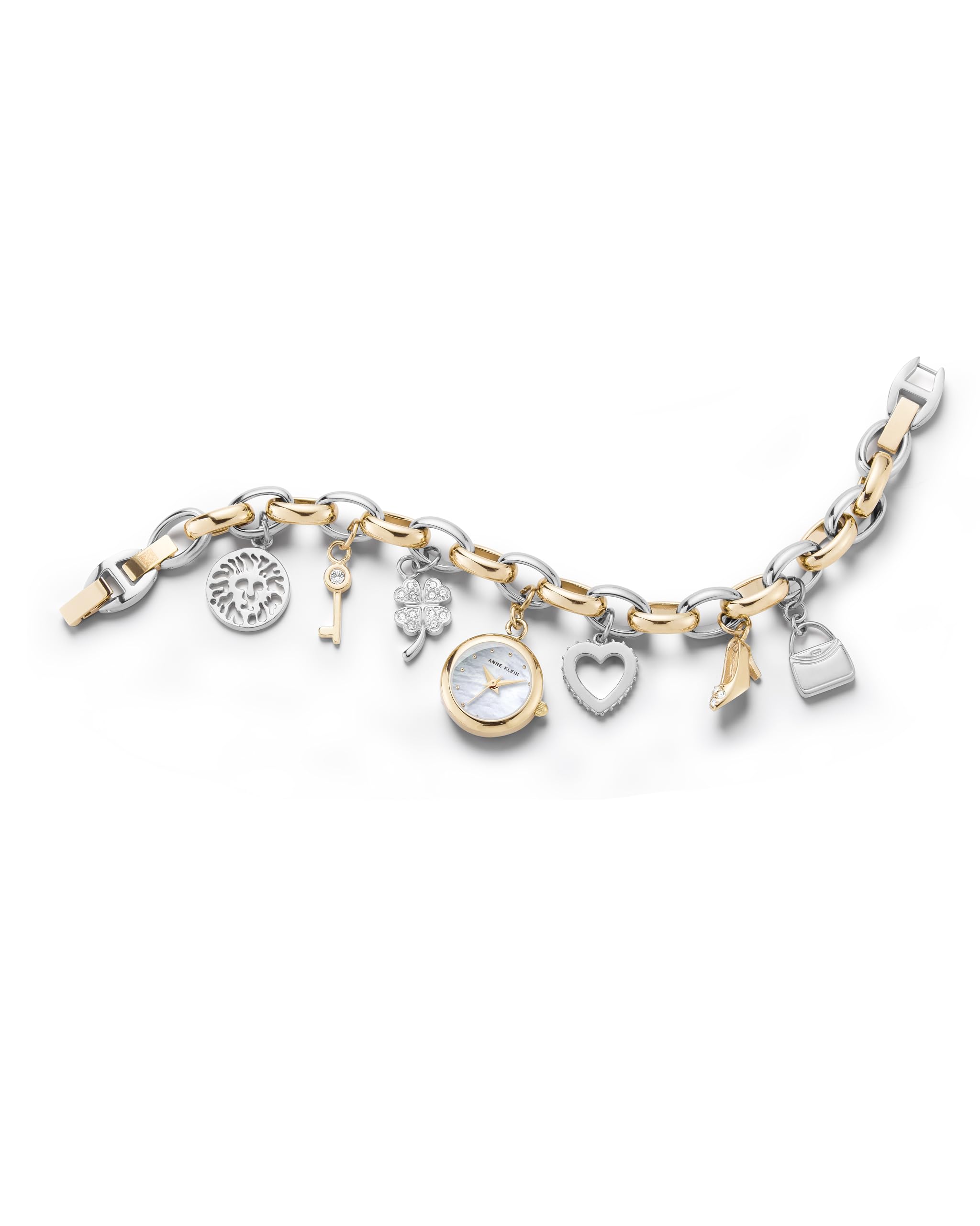 Anne Klein Women’s Premium Crystal Accented Gold-Tone Charm Bracelet Watch, 10/7604CHRM