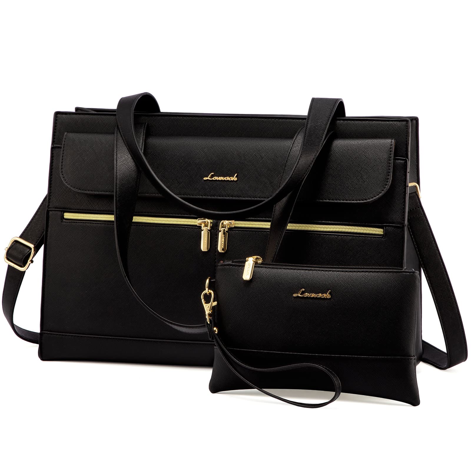 LOVEVOOK LOVEVOOK Laptop Bag for Women, Fashion Computer Tote Large Capacity, Leather Shoulder Bag Purse Set, Professional Business Work Briefcase for Office Lady 2PCs, Fit 15.6 Inch Laptop, Black