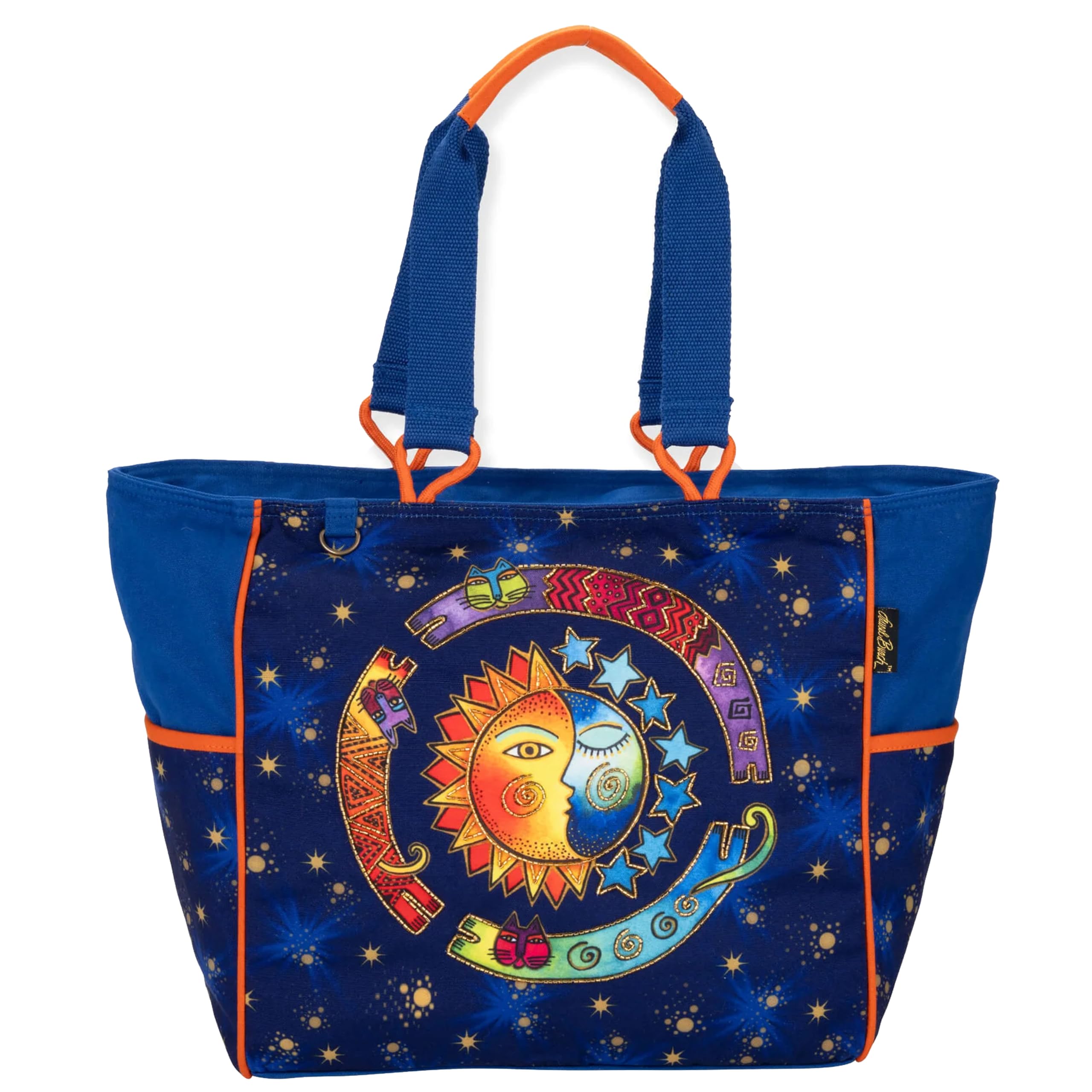 Laurel Burch Cosmos Large Shoulder Bag Vibrant Celestial Tote with Stars, Moons & Cosmic Cats