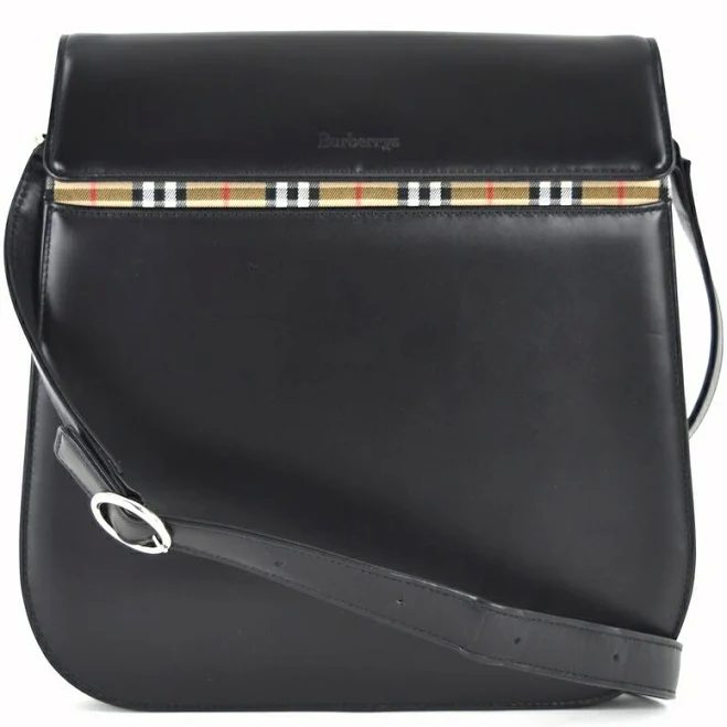 Burberrys Nova Check Leather Shoulder Bag Handbag Black