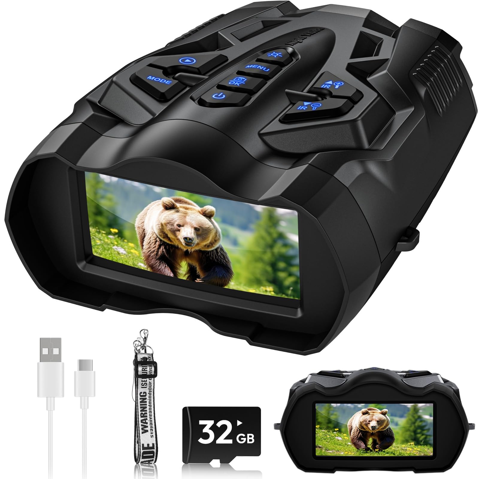 4K Night Vision Goggles for Adults,16X Zoom Night Vision Binoculars with 1000FT Infrared Range,5000mAh Rechargeable Battery,3.5″ Screen,Include 32GB Card,Gift for Mens and Outdoor Enthusiasts