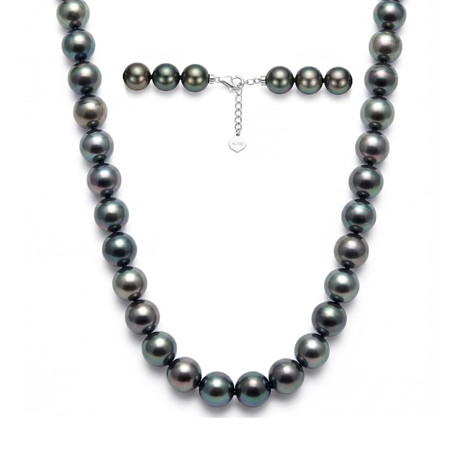 18K Solid Gold Real Tahitian Black Pearl Necklaces for Women – 43-Piece 9-10mm AAA Ocean-Grown Pearl, Strand Necklaces, Luxury Wedding Anniversary Birthday Christmas Gifts for Wife Mom, Length 17.7″+2″