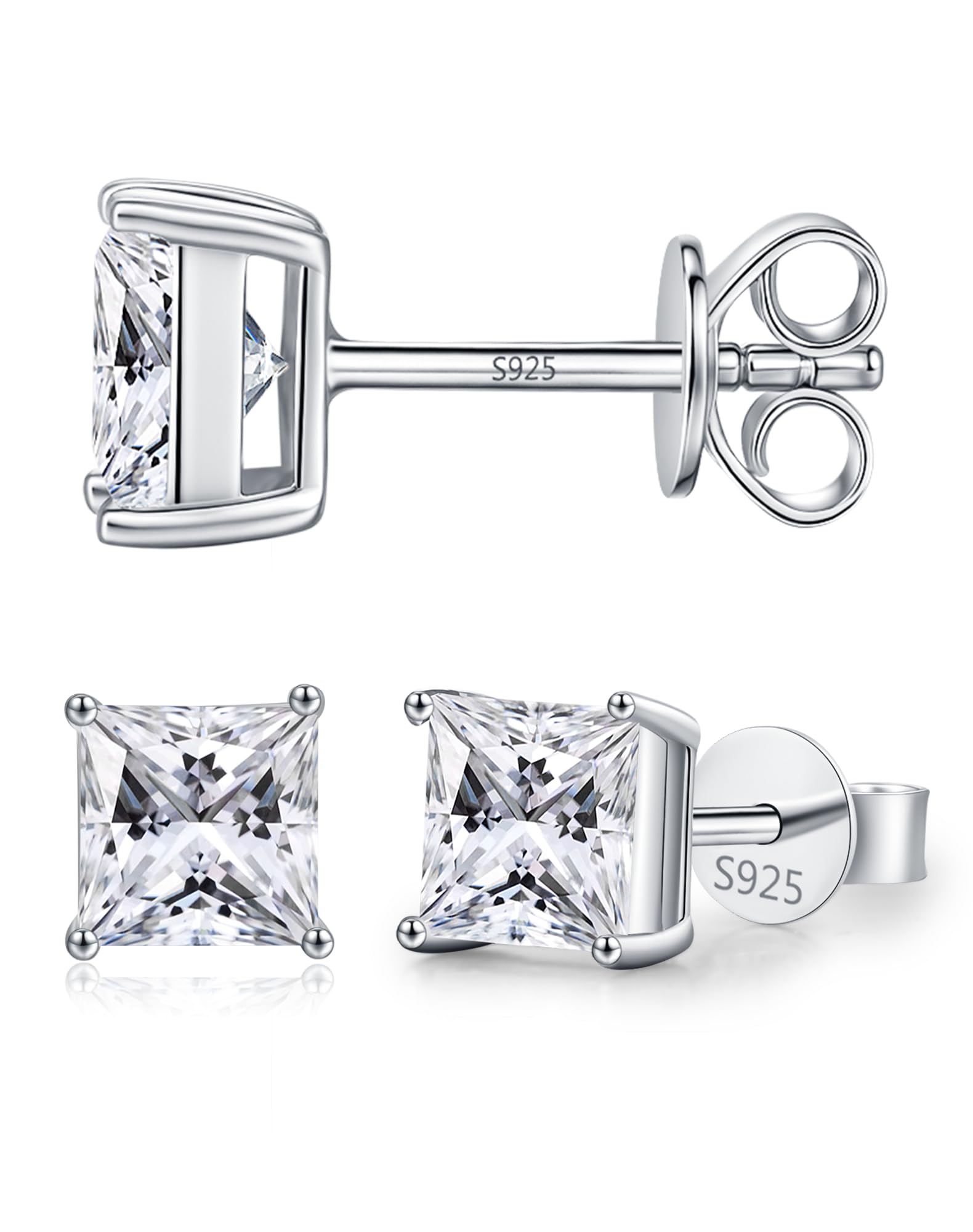 SugarTang Cubic Zirconia Stud Earrings Princess Cut Simulation-Diamond Earrings for Women Men 18K White Gold Plated 925 Sterling Silver square studs Hypoallergenic with gift box