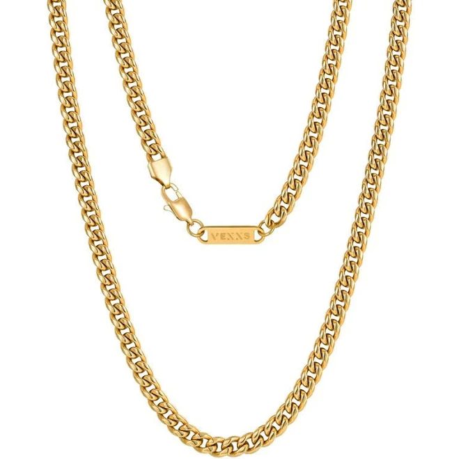 The VEXXS 18 Carat Gold Plated Stainless Steel Cuban Curb Chain Necklace perfectly marries form and function, providing a bold statement.