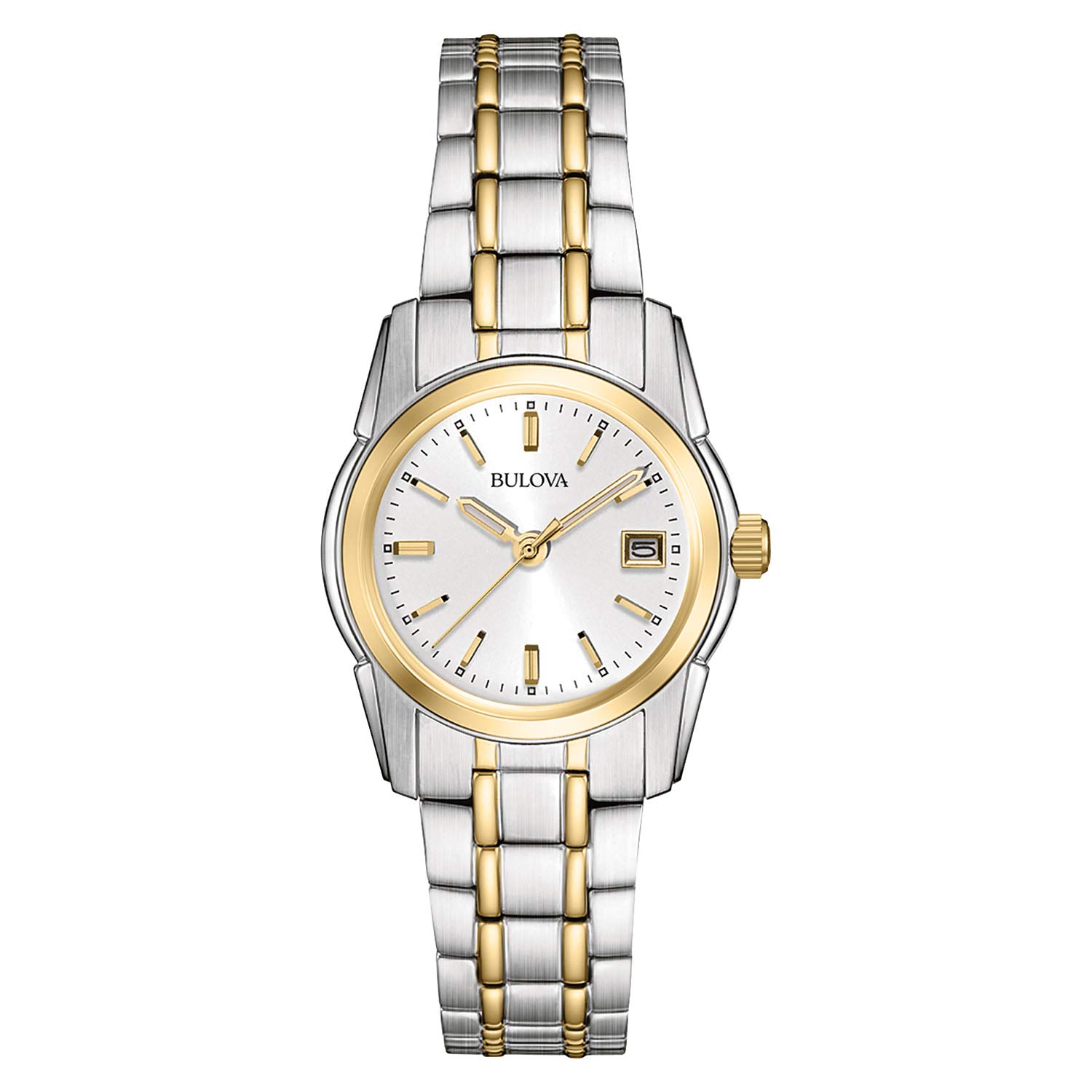 Bulova Ladies’ Classic Two-Tone Stainless Steel 3-Hand Calendar Date Quartz Watch, Silver-White Dial (Style: 98M105)