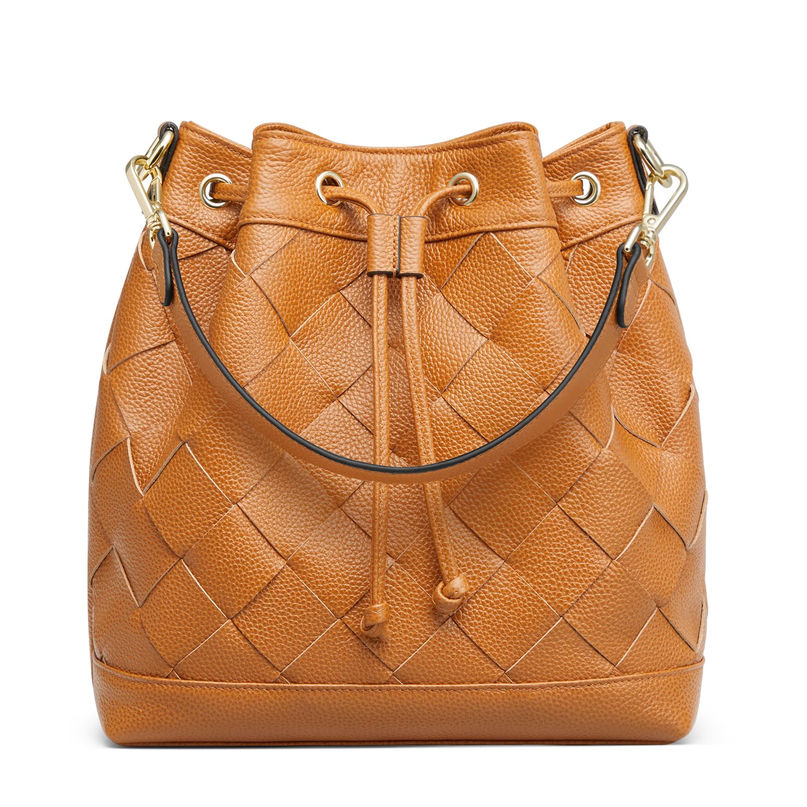 Kattee Woven Leather Bucket Bags for Women, Drawstring Crossbody Hobo Purses and Shoulder Handbags with 2 Straps