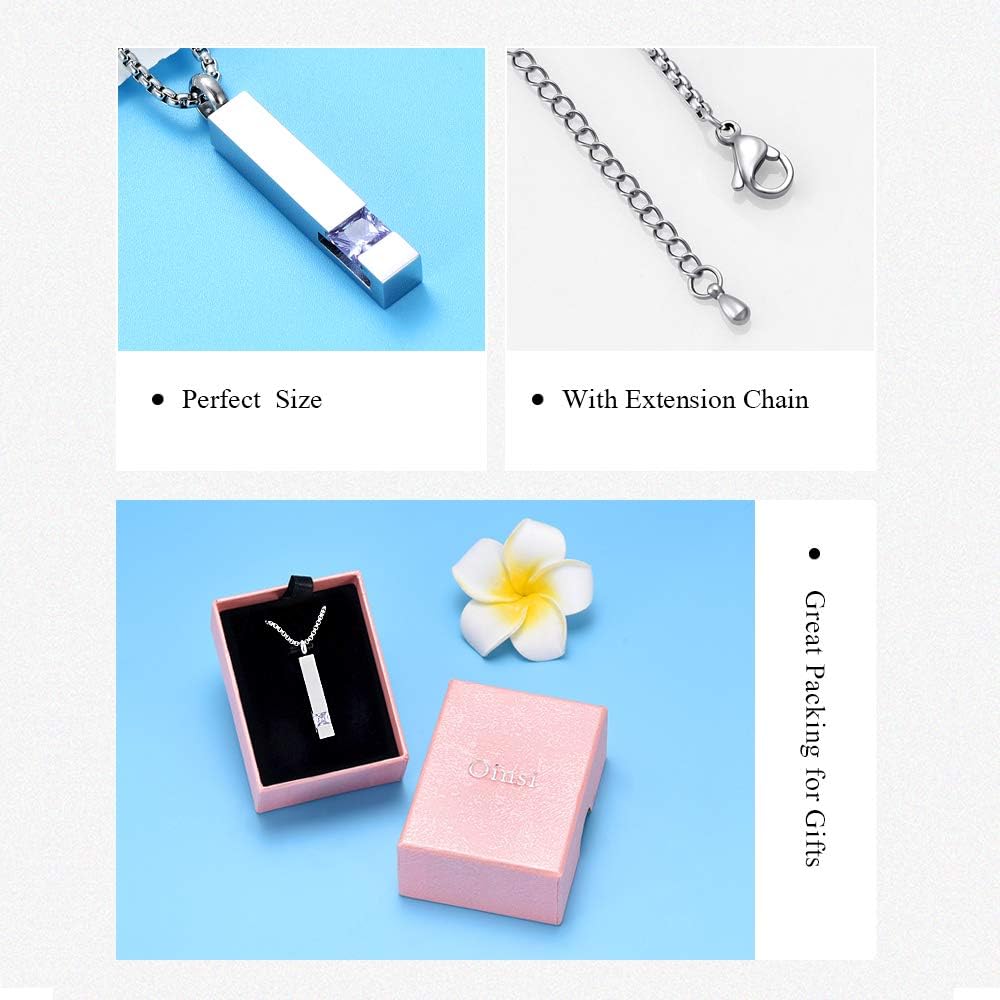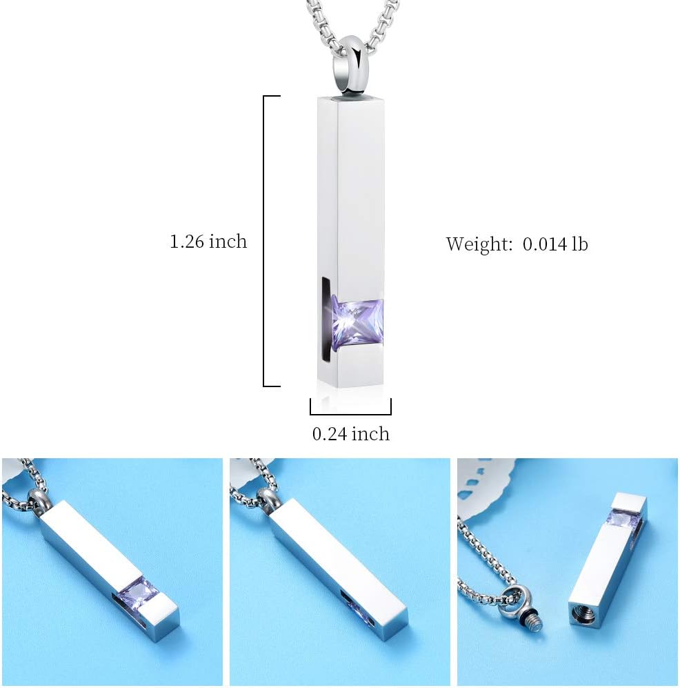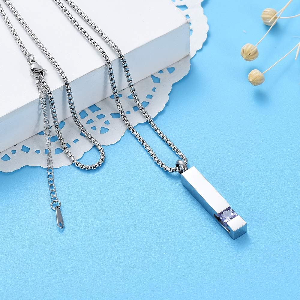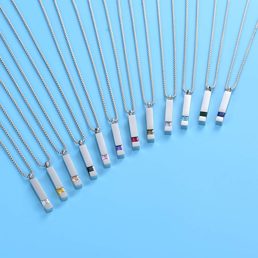 12 Birthstone Bar Cremation Necklace for Women Men Stainless Steel Memorial Urn Jewelry Hold Ashes Keepsake Pendant