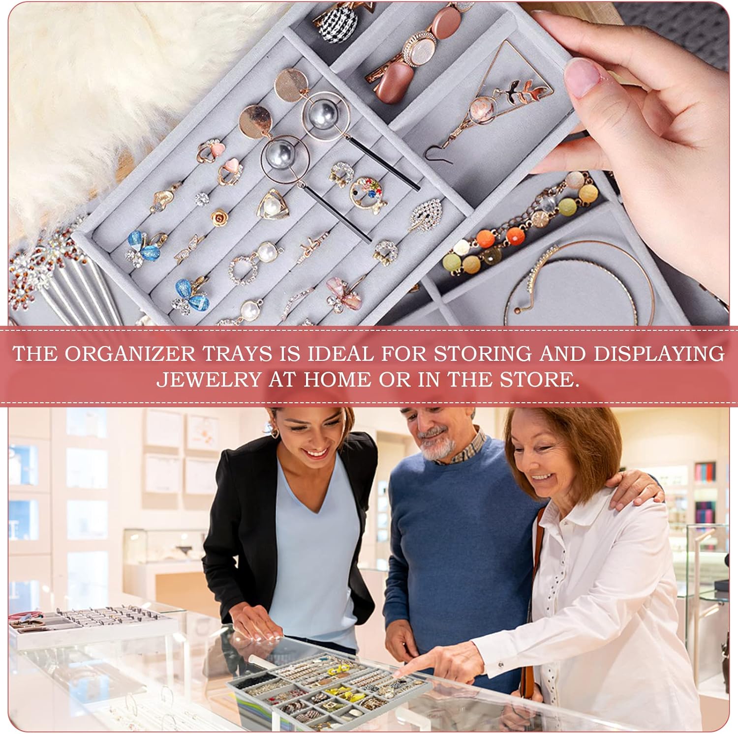 Premium Material: Jewelry storage display tray is made of high-quality velvet and composite board, comfortable to touch and elegant in appearance, sturdy and durable. Soft and smooth surface can protect your jewelry from scratches and damages.