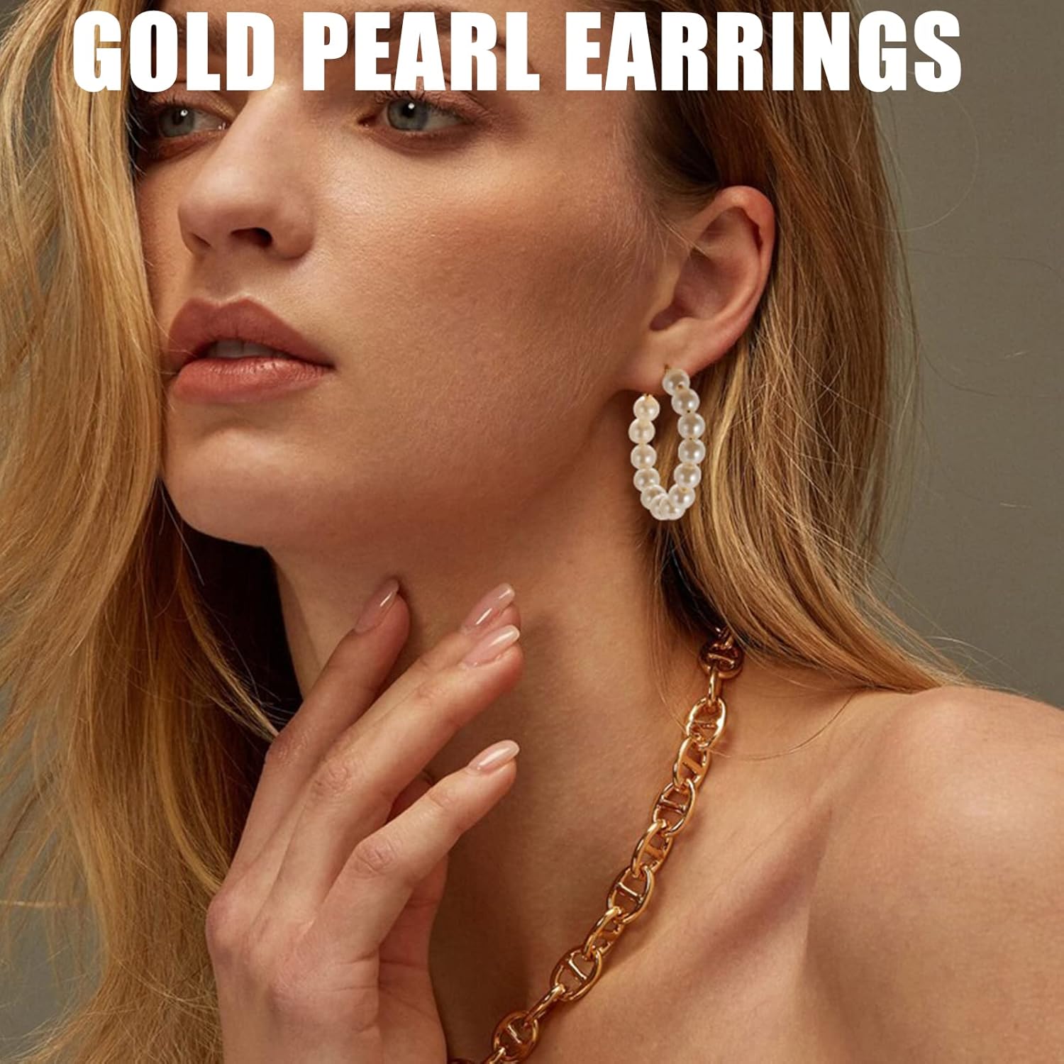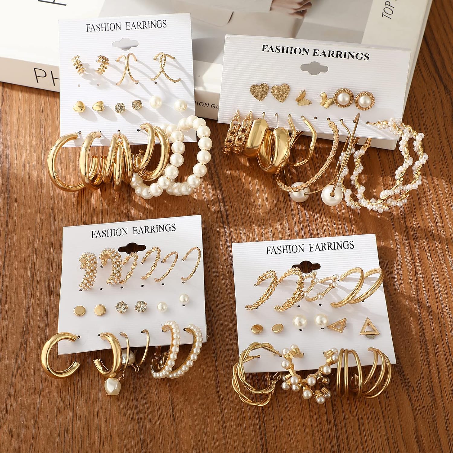 36 Pairs Gold Earrings Set for Women Girls, Fashion Pearl Chain Link Stud Drop Dangle Earrings Multipack Statement Earring Packs, Hypoallergenic Earrings for Birthday Party Christmas Jewelry Gift