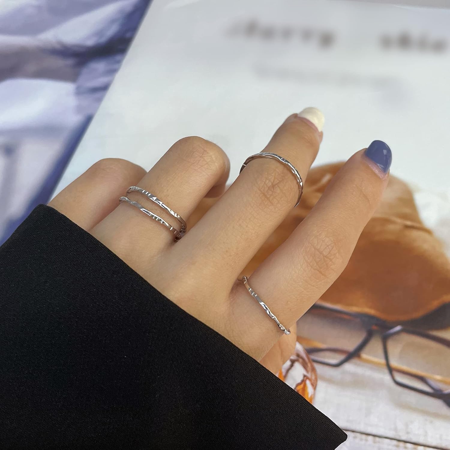 925 Sterling Silver Minimalist Hammered Textured Thin Knuckle Midi Stacking Rings